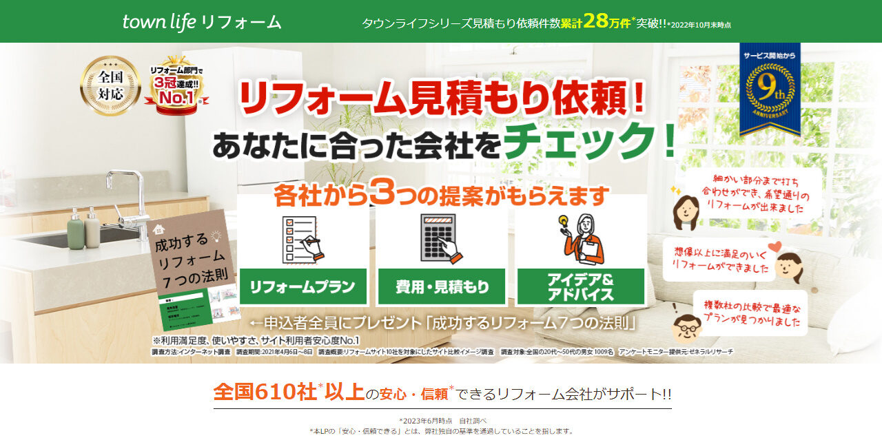 最近では様々なリフォーム見積もりサイトがありますが、タウンライフリフォームはいま最も注目されている見積もりサイトと言えます。